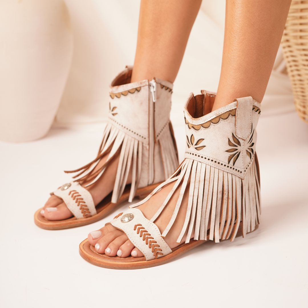 Cozumel botas de corte cowboy estilo Boho Chic con detalles de flecos y bordados en cuero. Muy moderno y elegante.