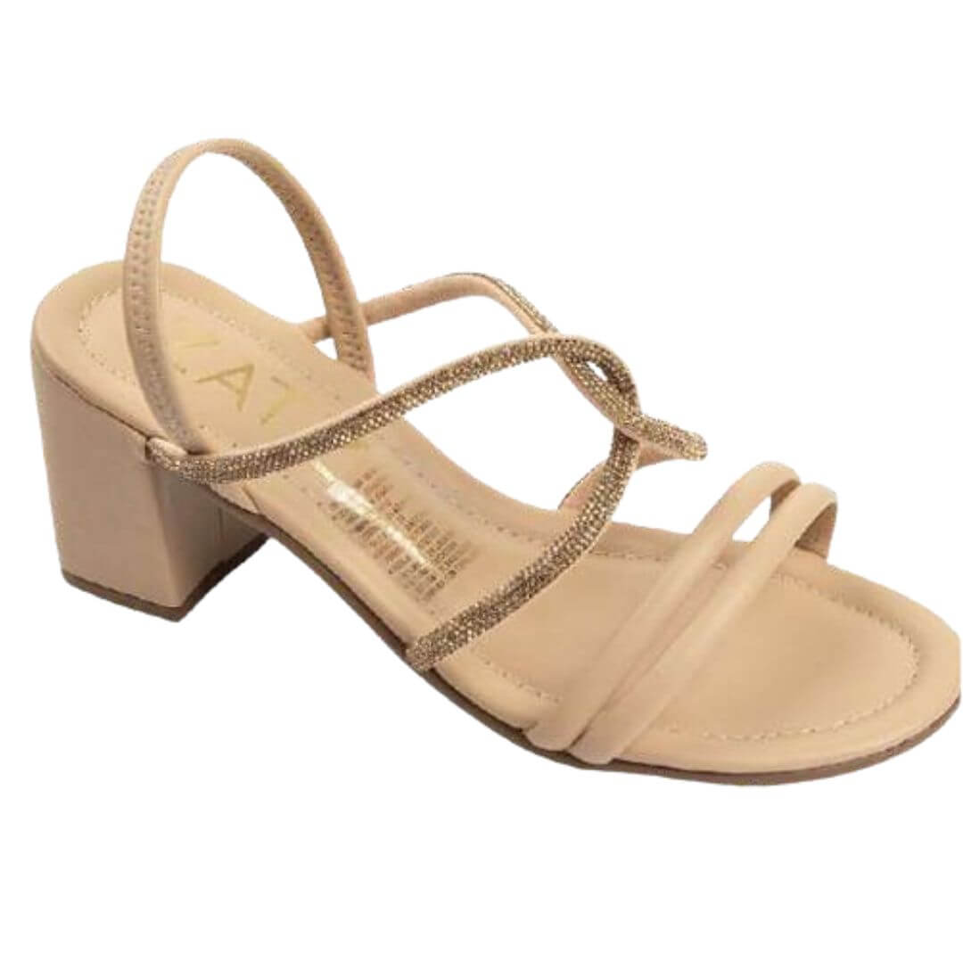 Sandalias Adela, hermosas sandalias con detalles de tiritas con brillo y beige muy delicadas.