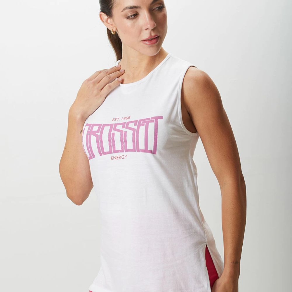 Musculosa de Jersey Crossfit Mozione. Su confección en jersey suave y flexible te brinda libertad de movimiento y frescura, ideal para rutinas intensas de Crossfit o cualquier actividad deportiva.